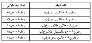 نماد معاملاتی انبارهای زعفران نگین و پوشال معمولی جهت انجام معاملات گواهی سپرده کالایی در جدول پایین قابل مشاهده است.